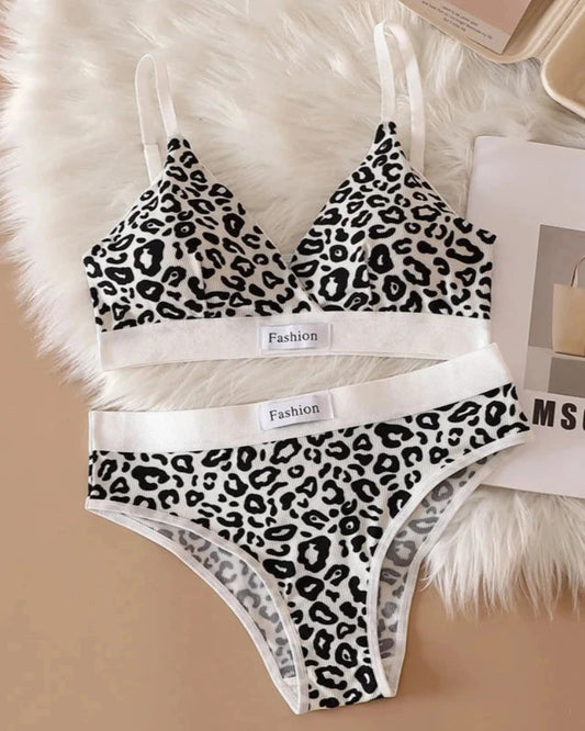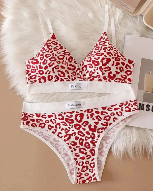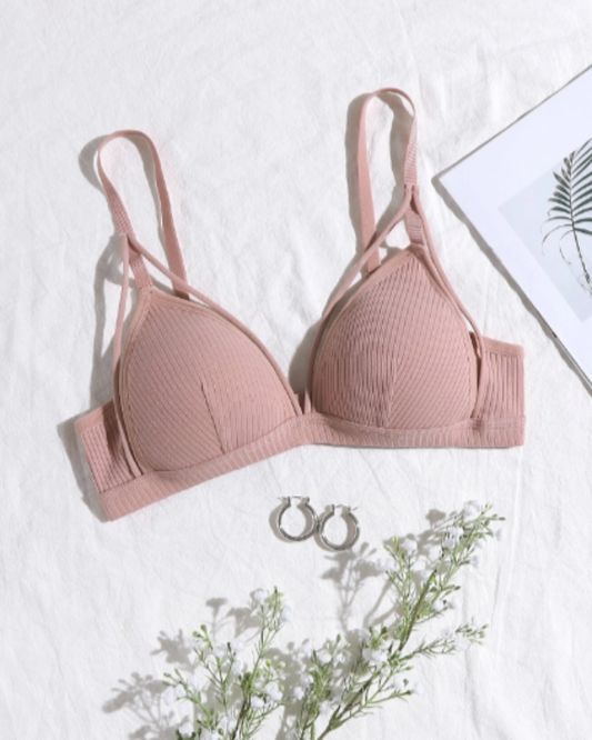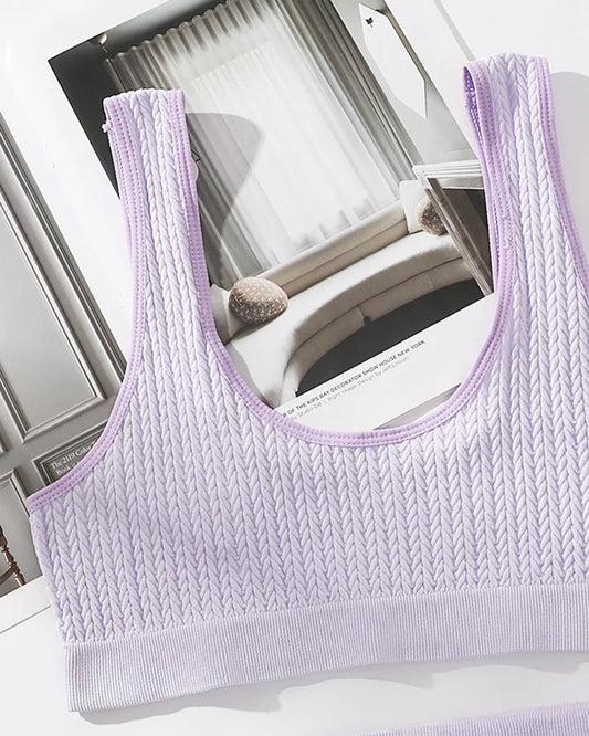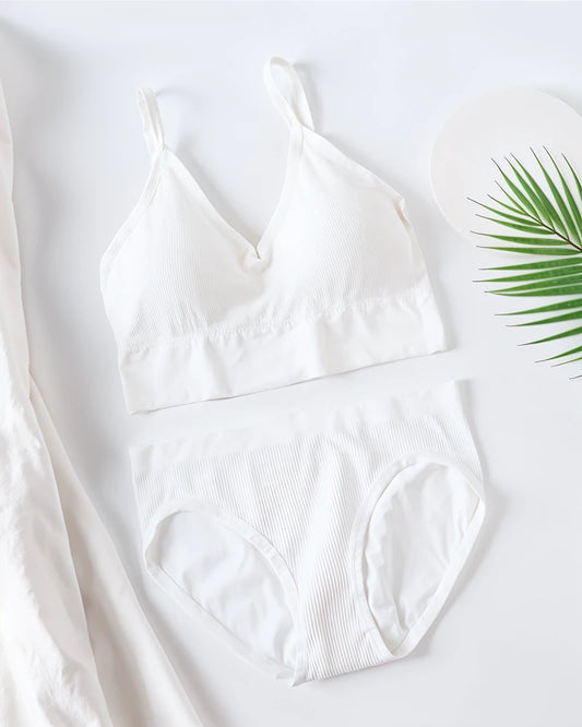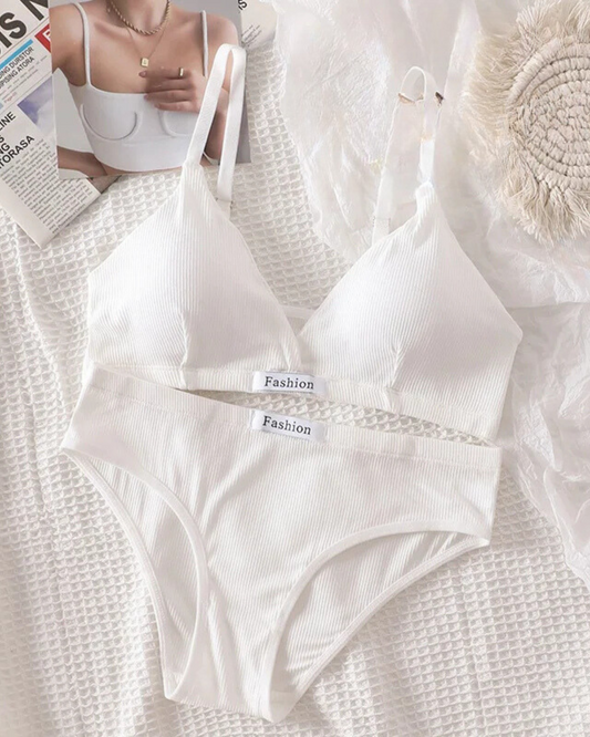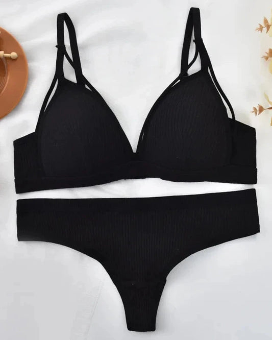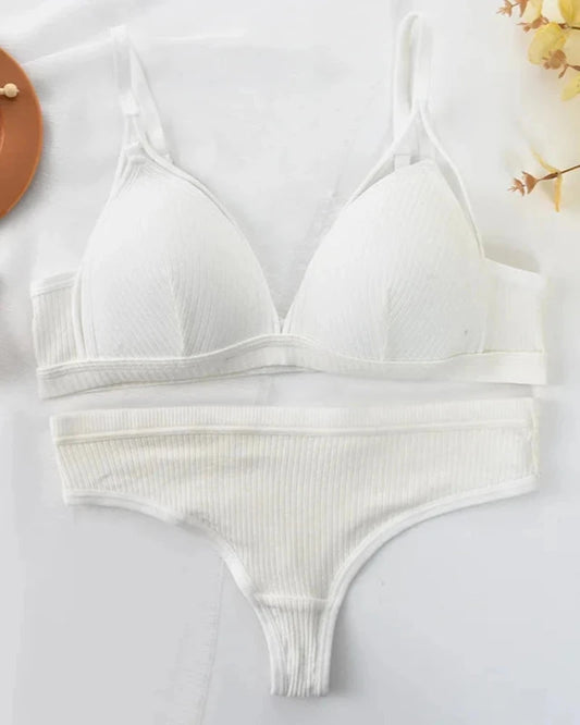Wygodny komplet bielizny w prążki z ozdobnymi paseczkami