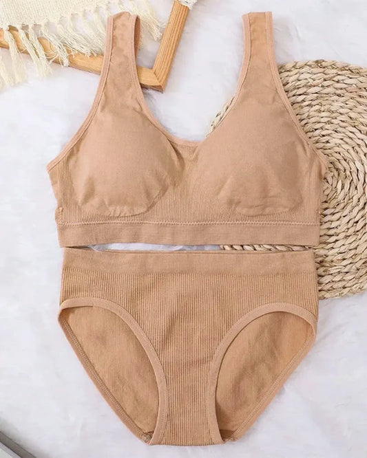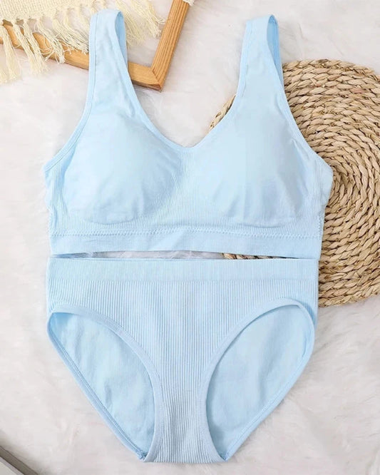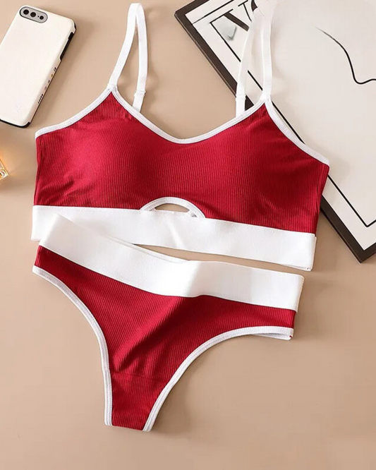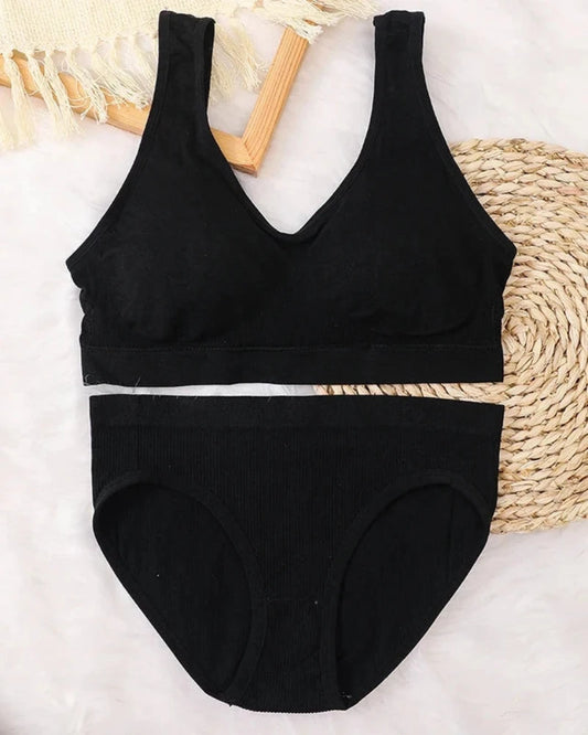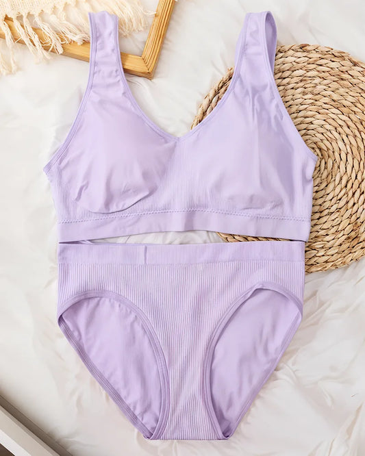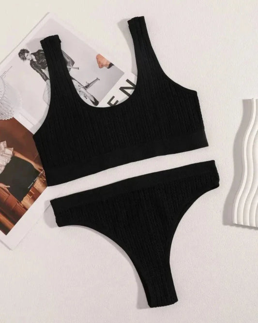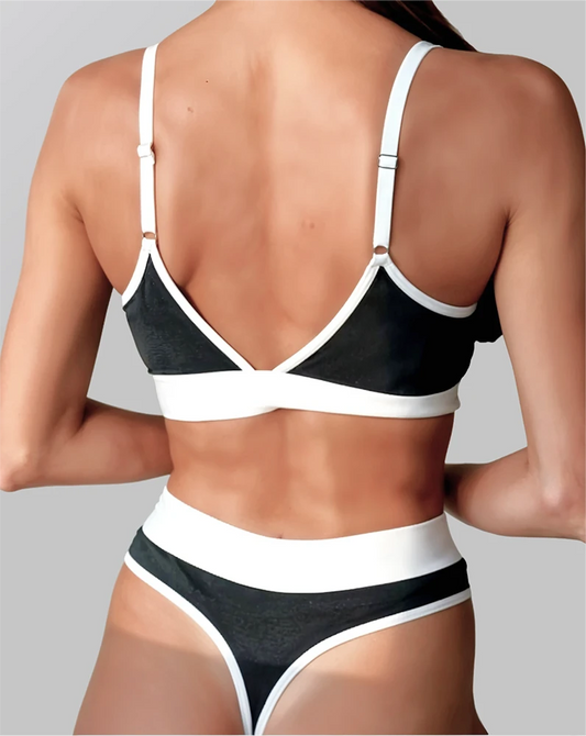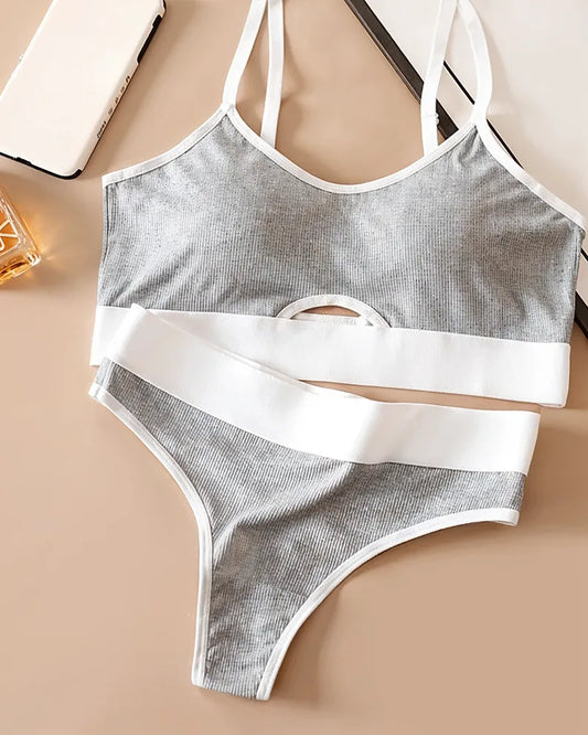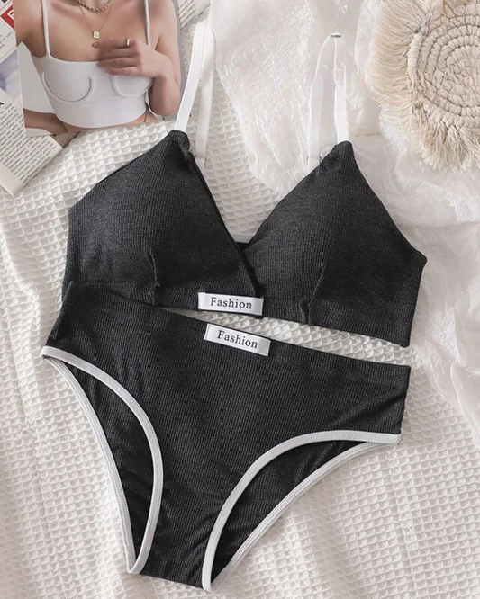 Wygodny komplet bielizny w prążki z kontrastowymi szwami