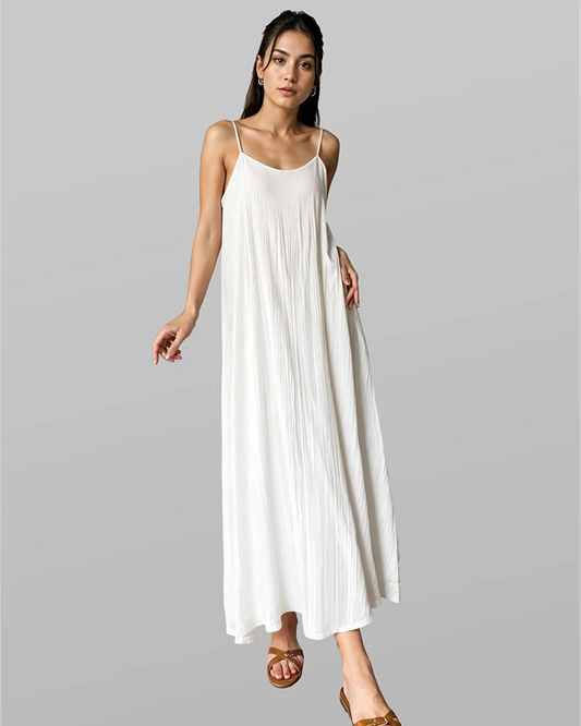Długa przewiewna koszula nocna z wiązanymi ramiączkami
