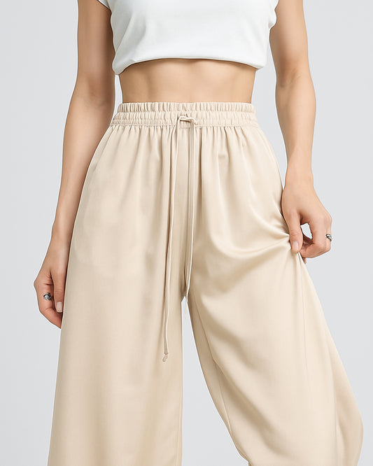 Luźne długie spodnie satynowe z szerokimi nogawkami