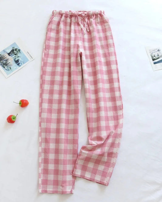 Wygodne luźne spodnie w kratę z szerokimi nogawkami