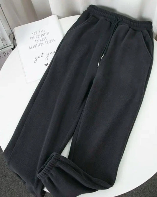 Wygodne spodnie ocieplane z szerokimi nogawkami