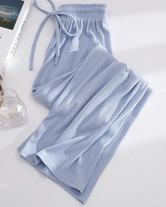 Obecnie królują zarówno krótkie spodenki, jak i długie, luźne spodnie w różnych materiałach. Trend na oversize i szersze nogawki widać także w modzie domowej. Zwróć uwagę na naturalne tkaniny, które są nie tylko modne, ale też przyjemniejsze dla skóry.